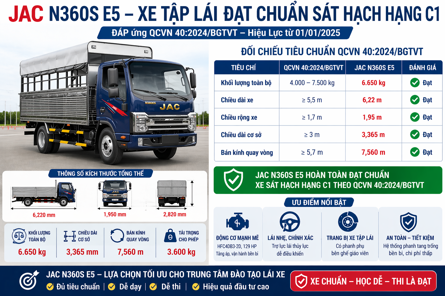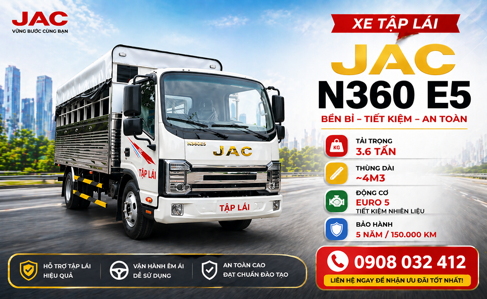 Xe tập lái JAC N360S E5 là lựa chọn lý tưởng cho các trường đào tạo lái xe muốn nâng cao chất lượng giảng dạy và tối ưu chi phí đầu tư. Với thiết kế hiện đại, vận hành bền bỉ và trang bị an toàn đầy đủ, đây chính là dòng xe đáng đầu tư nhất trong phân khúc xe tập lái hiện nay.